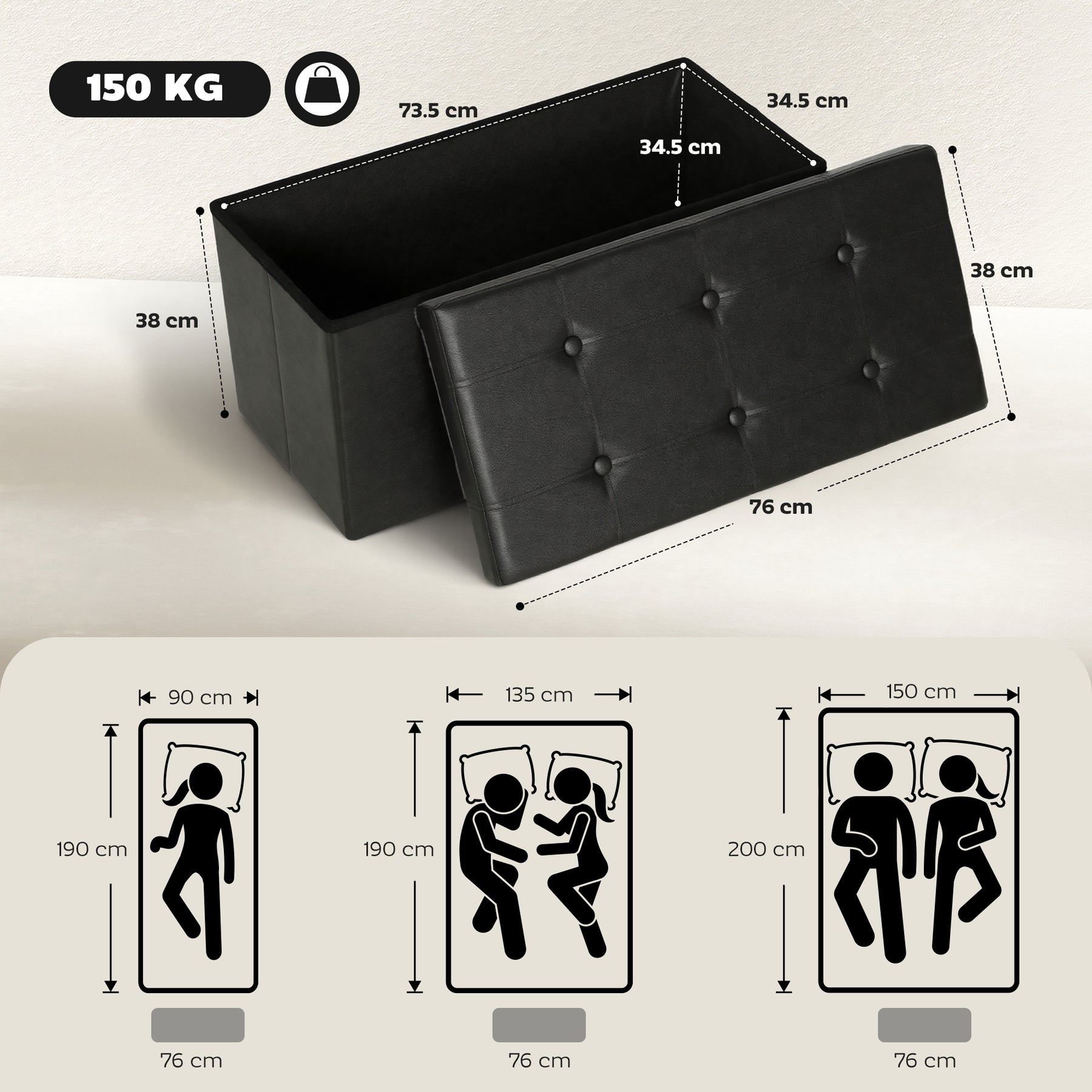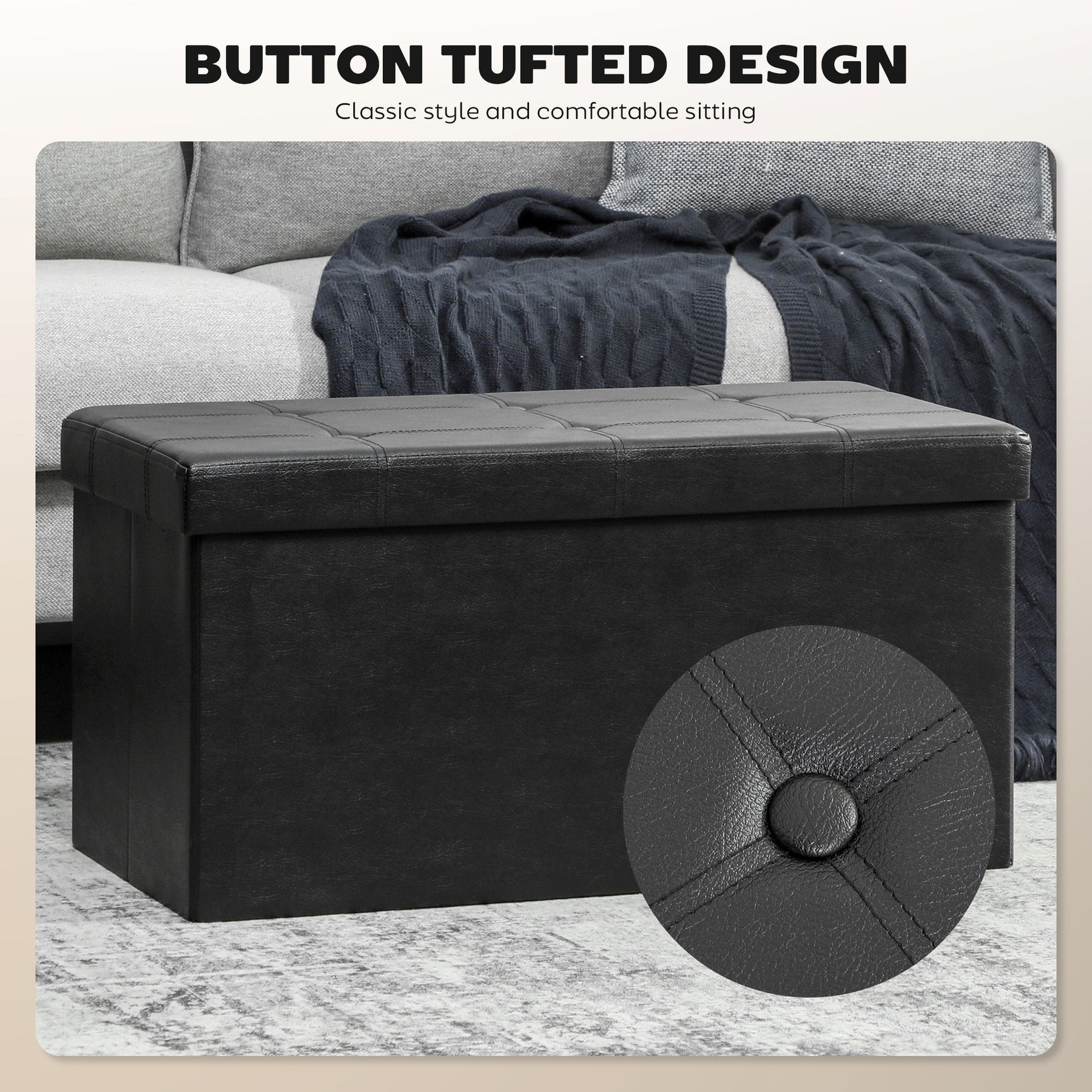 MCL Storage Ottoman Bench, 89L PU Leather Folding Foot Rest Stool, End of Bed Bench, Easy Assembly, for Living Room, Bedroom, Entryway, Black