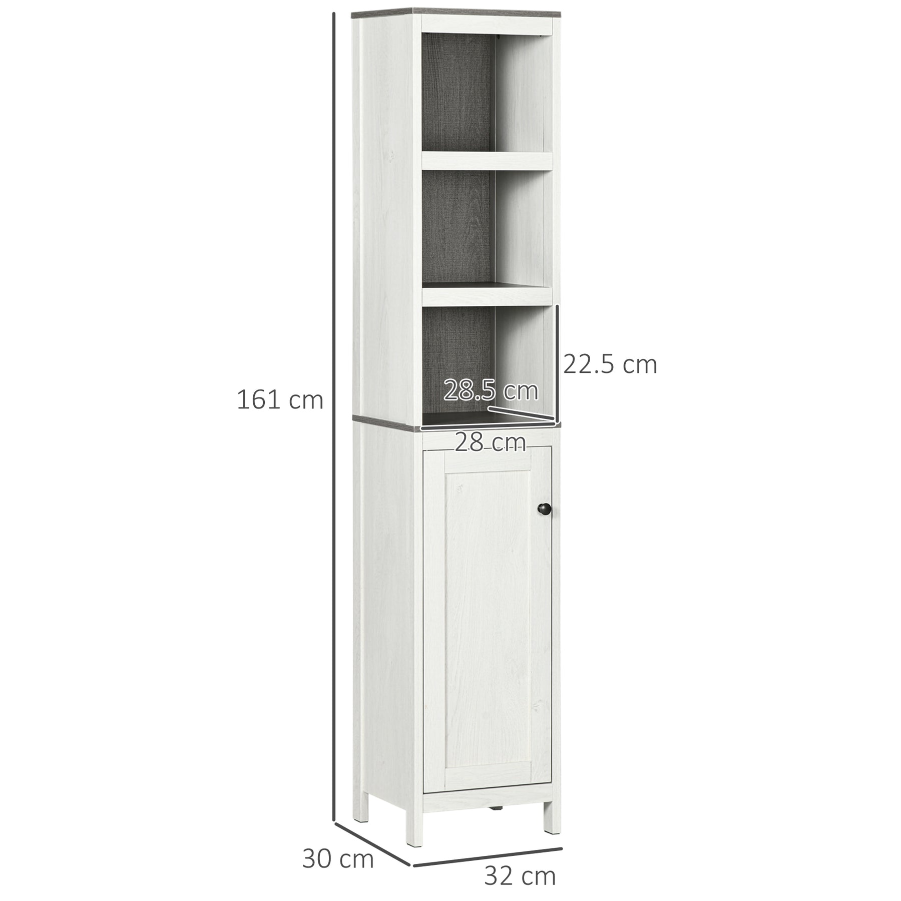 MCL Tall Bathroom Storage Cabinet, Freestanding Tower Cabinet with 3 Open Shelves and Adjustable Shelf, Antique White