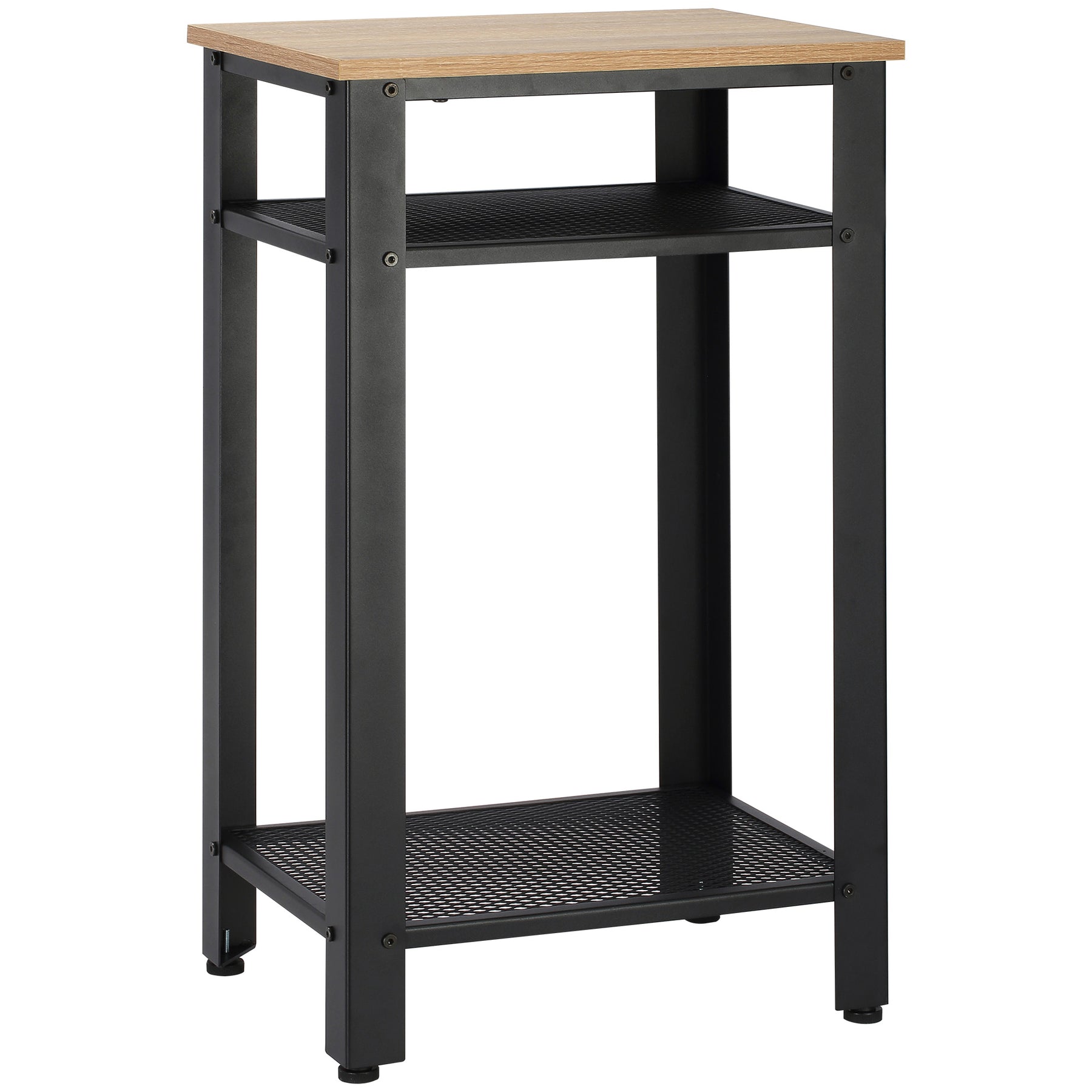 MCL Tall Side Table with 3 Layer, 2 Shelves Storage Display Industrial-Style, Metal Frame, Bedside End Table for Living Room Bedroom, Oak and Black