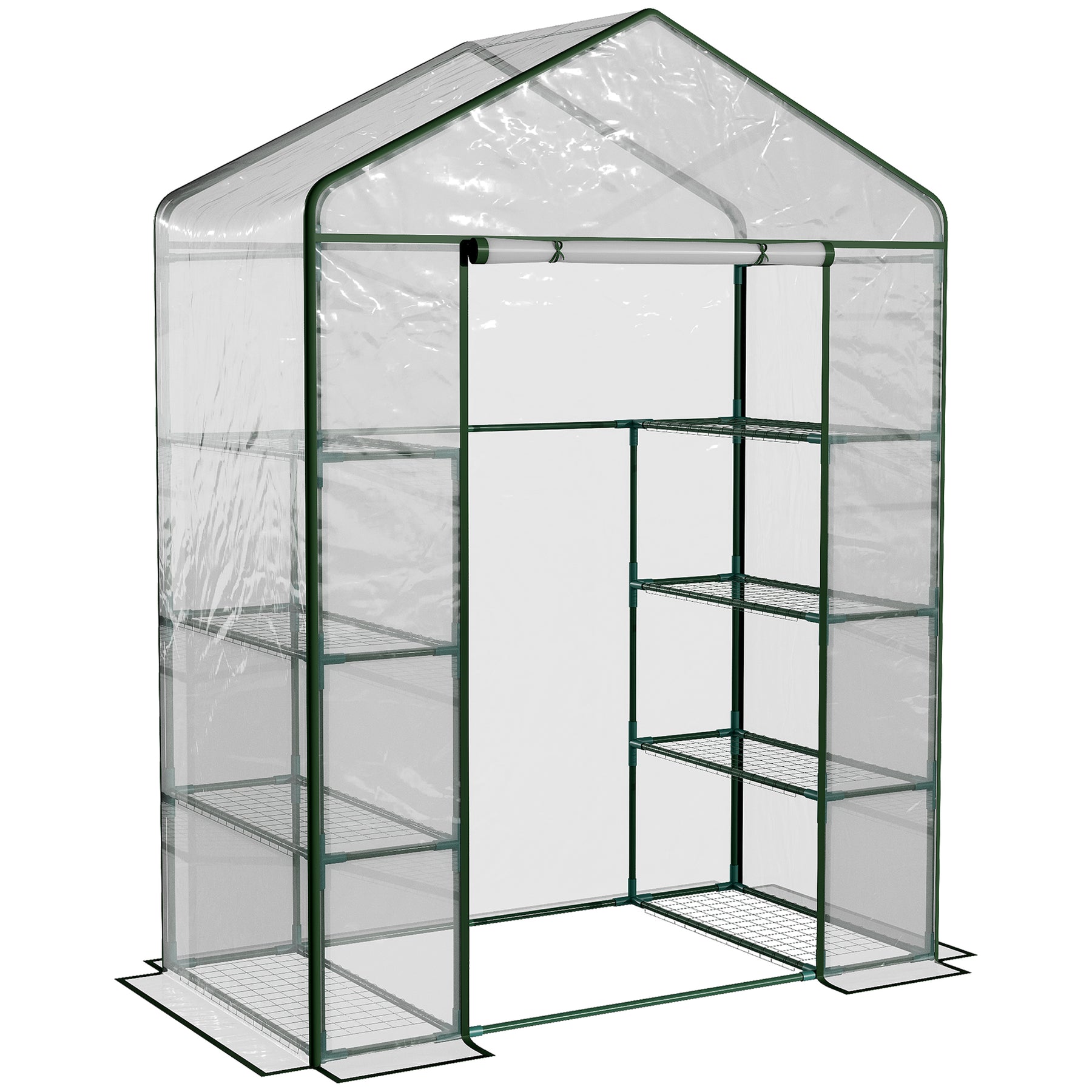 MCL Walk in Greenhouse with 4-Tier 8 Shelves, Green House with Hemmed Cover, Roll-up Zipped Door, Steel Frame, 143 x 73 x 195cm