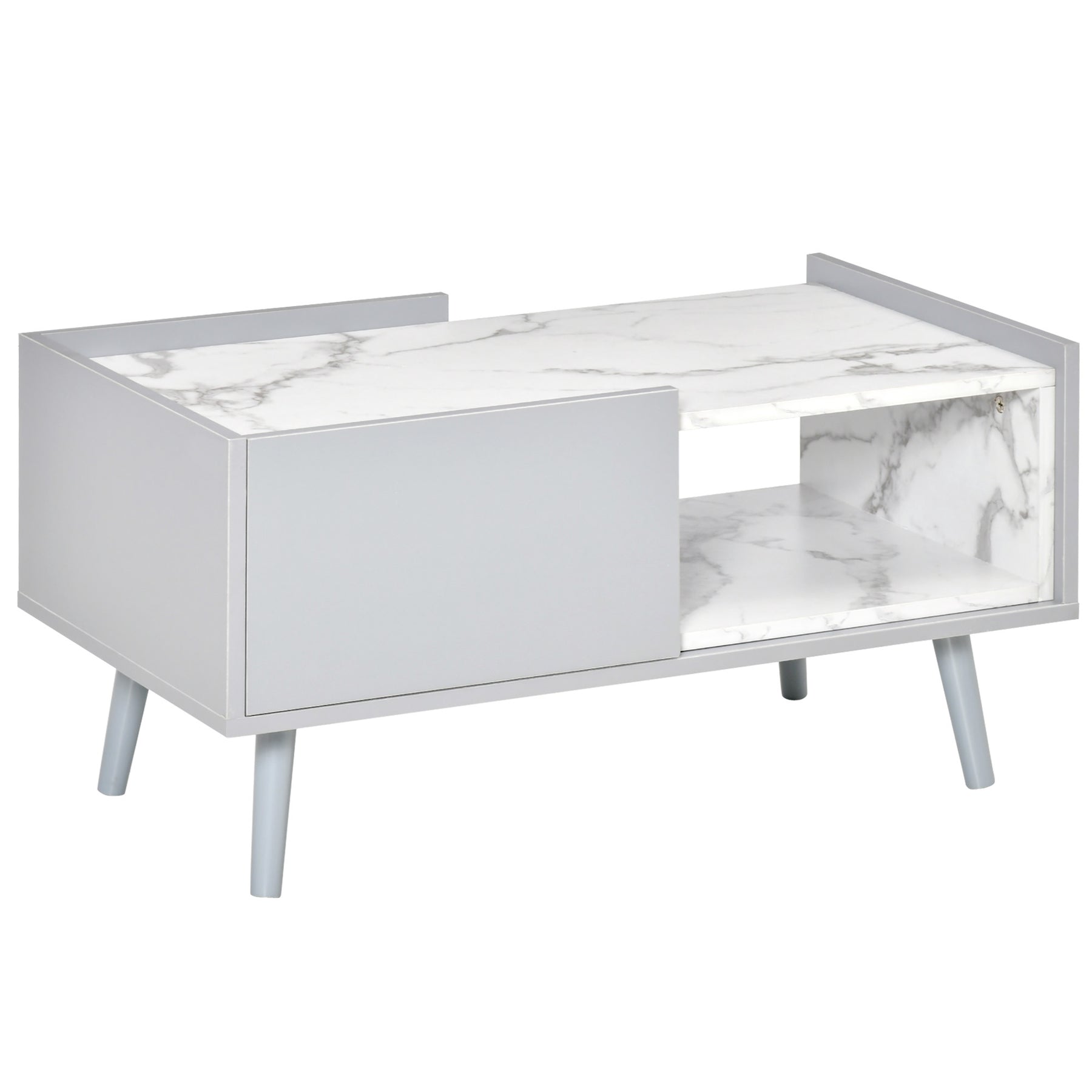 Twice the style comes in form of this marble coffee table from MCL. A light grey outer-shell and inner marble-effect table, creates an eye-catching look suitable for practically every home. Even better, the cocktail table features a drawer and middle compartment for storage and display - perfect for books, magazines and decorations to give your space a personal touch. Flat top also offers extra holding room. Made from particle board, the white coffee table with storage is durable, with wooden legs to finish for stability.