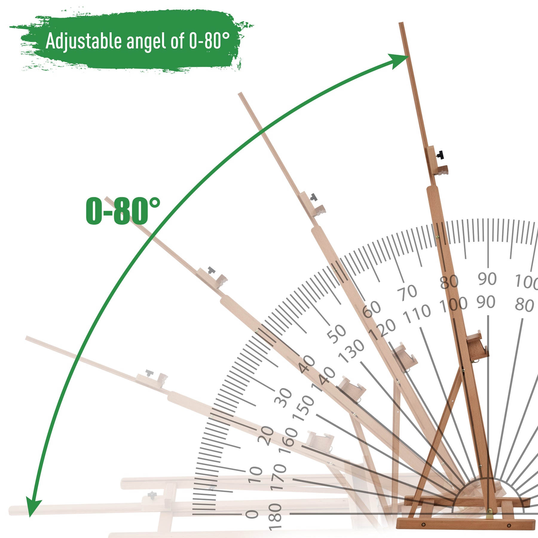 MCL Wooden Easel Stand H-Frame Artist Easel with 171-230cm Adjustable Height and 0-80° Working Angles Beech Wood Art Easel for Displaying Painting Wedding Sign Nature Wood Finish