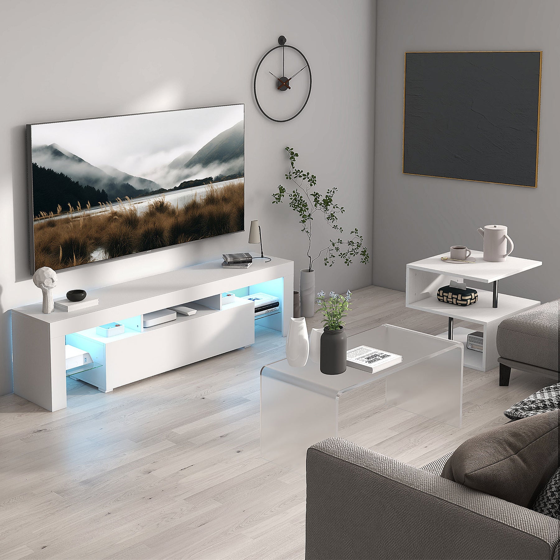 MCL Wooden S Shape Cube Coffee Table 2 Tier Storage Shelves Organizer Office Bookcase Living Room End Desk Stand Display (White)