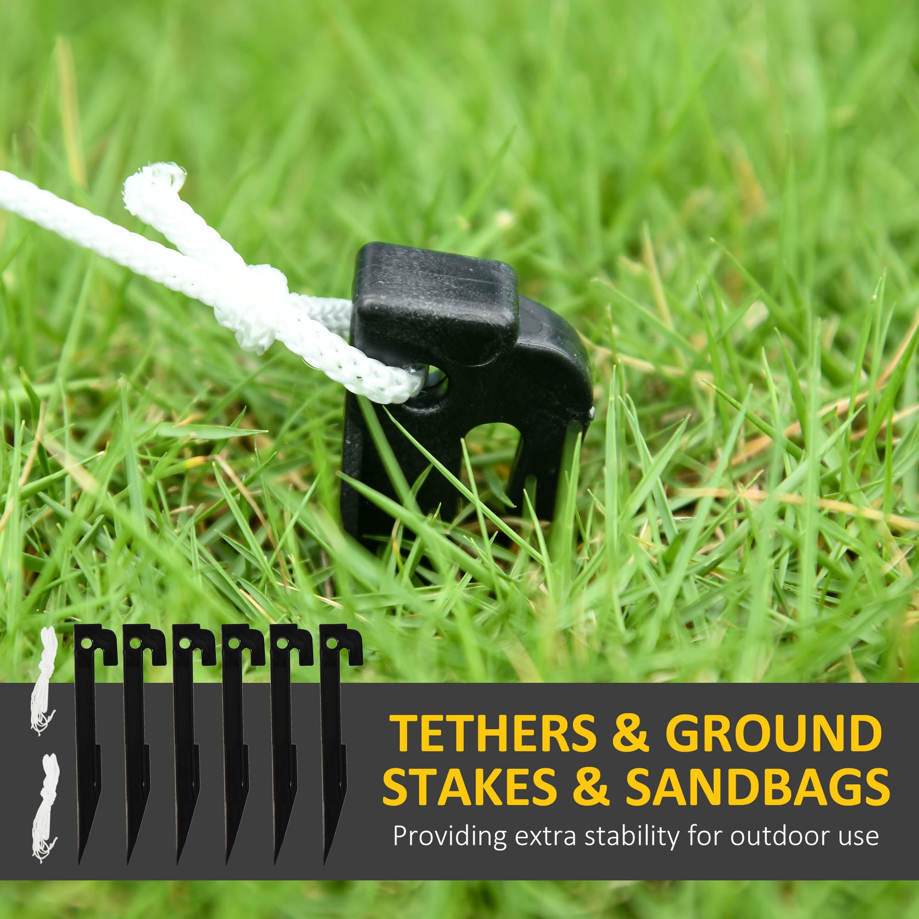 • Six ground stakes, two guy ropes and two sandbags included to pin and stabilise to the ground