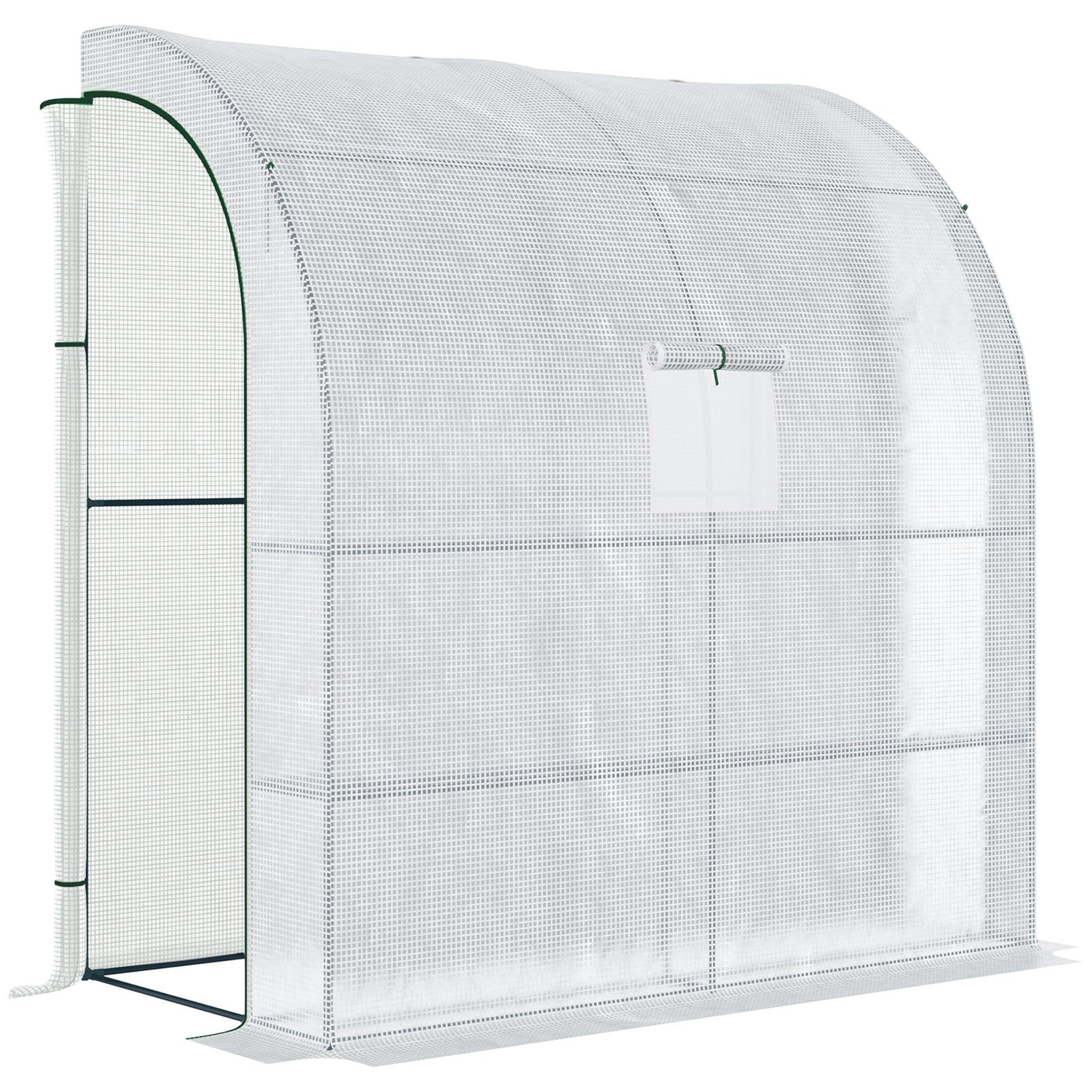 MCL Walk-In Lean to Wall Greenhouse with Windows and Doors, Outdoor Green House with 3 Tiers 4 Wired Shelves, 200L x 100W x 215Hcm, White