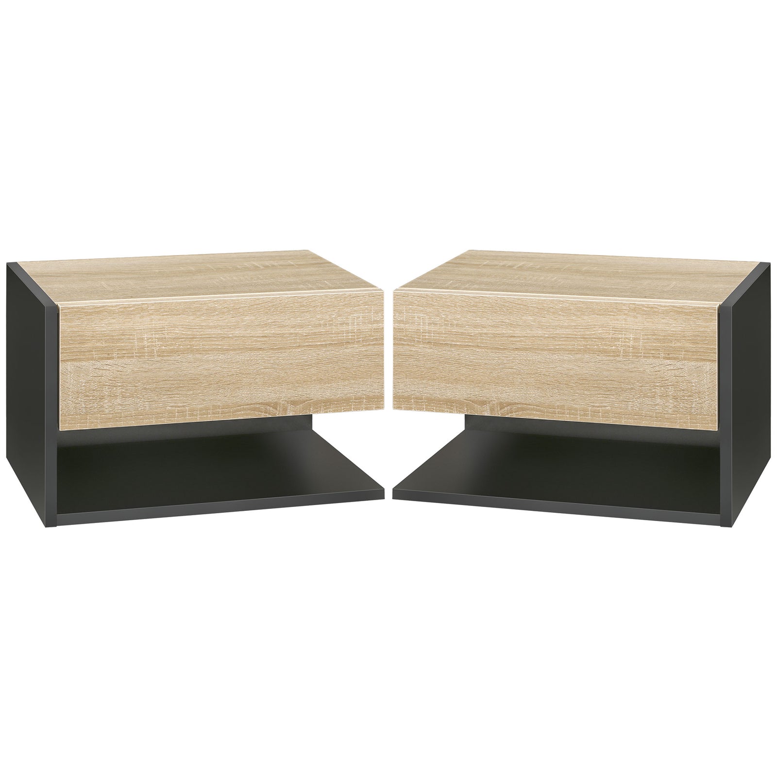 HOMCOM Floating Bedside Table Set of 2, Wall Mounted Bedside Cabinet with Drawer and Open Shelf, Modern Nightstand for Bedroom, 46 x 30 x 30 cm, Oak Tone