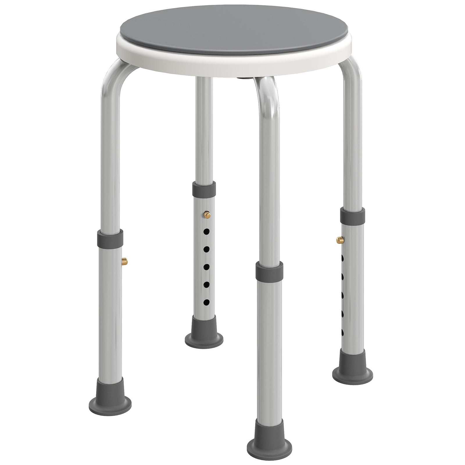 HOMCOM 360° Swivel Shower Chair, Height Adjustable Aluminium Shower Stool with Non-Slip Feet for Disabled, Elderly, Grey