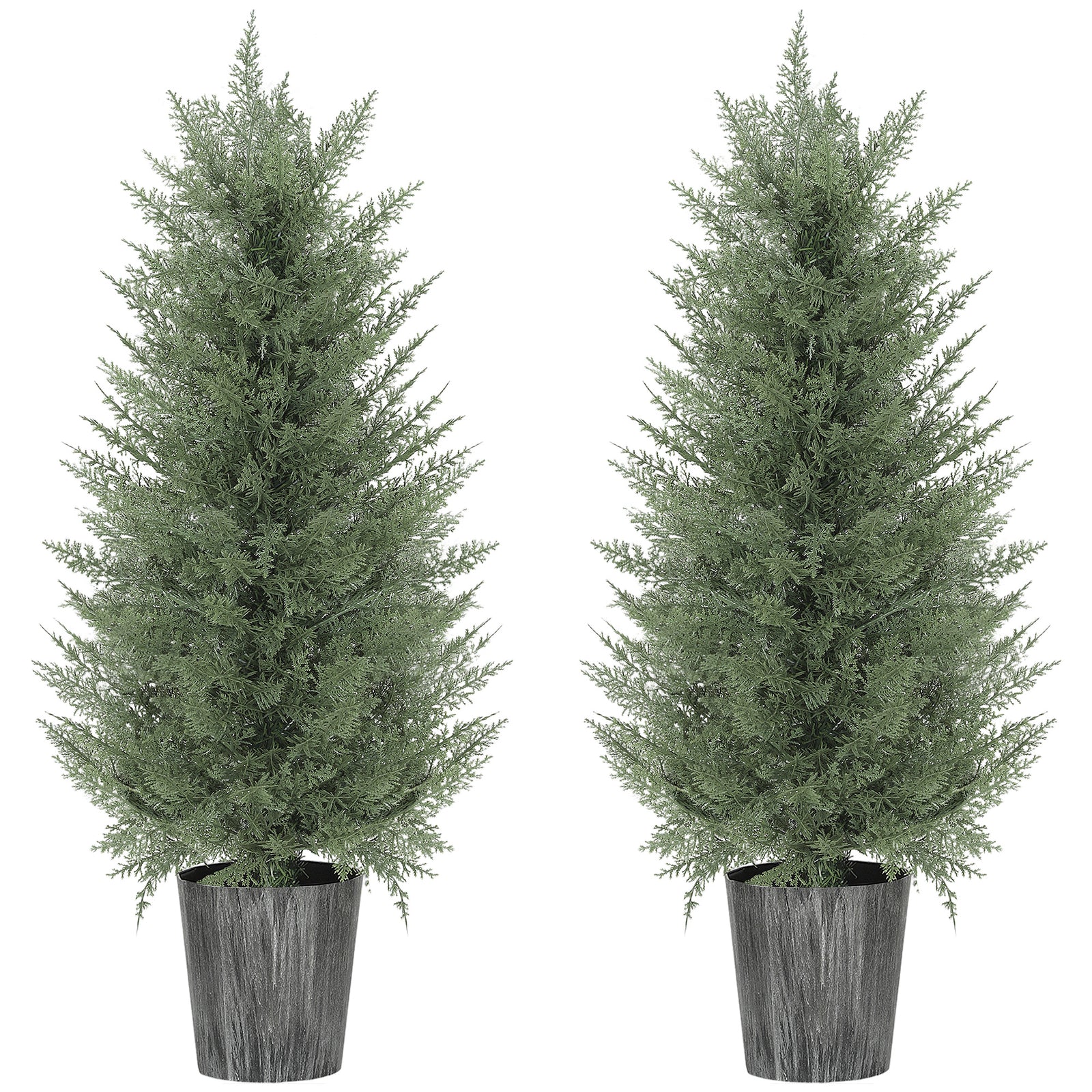 HOMCOM 90cm Artificial Cypress Trees Set of 2, UV Resistant Artificial Plants with Decorative Pot, Fake Plants for Indoor Outdoor Decor, Green