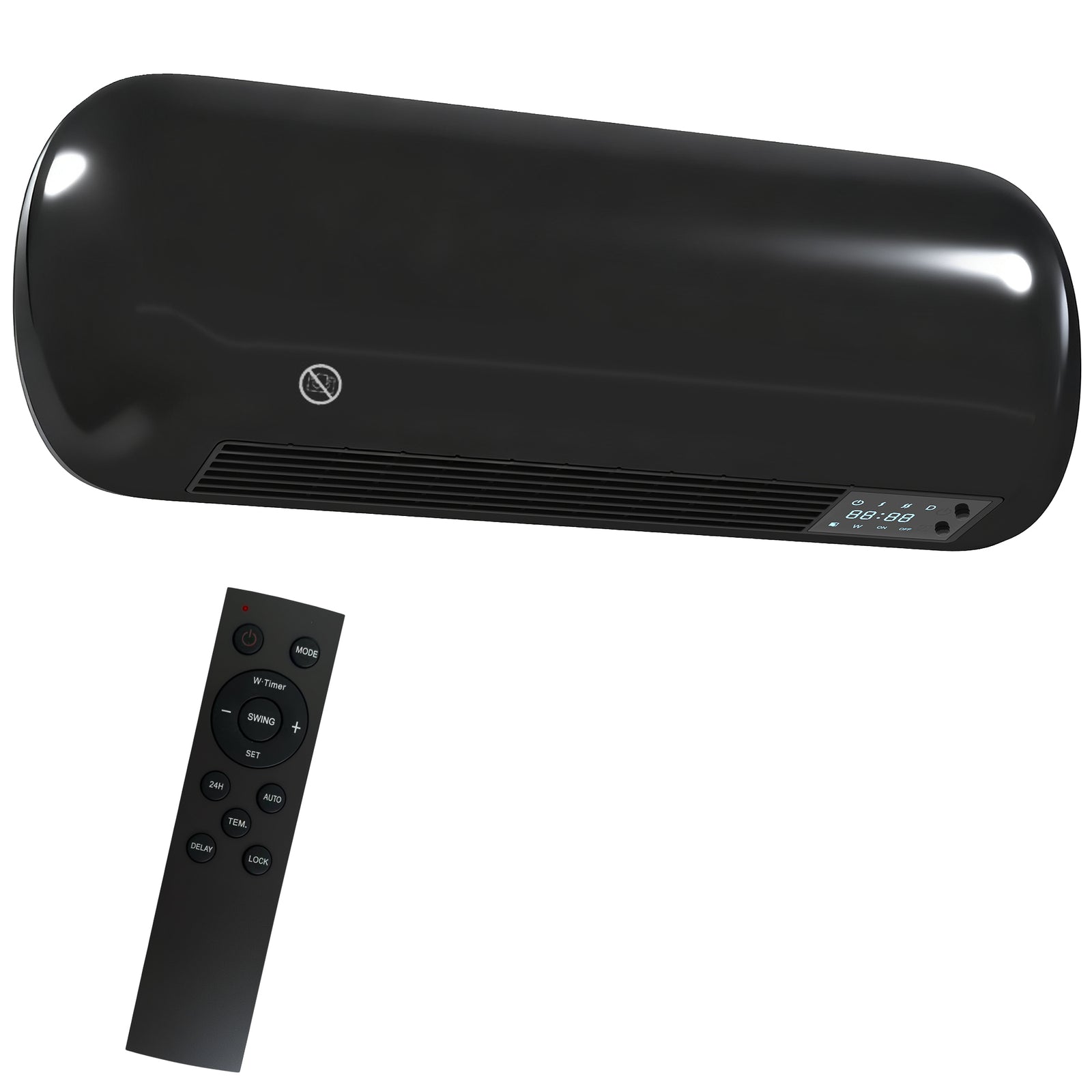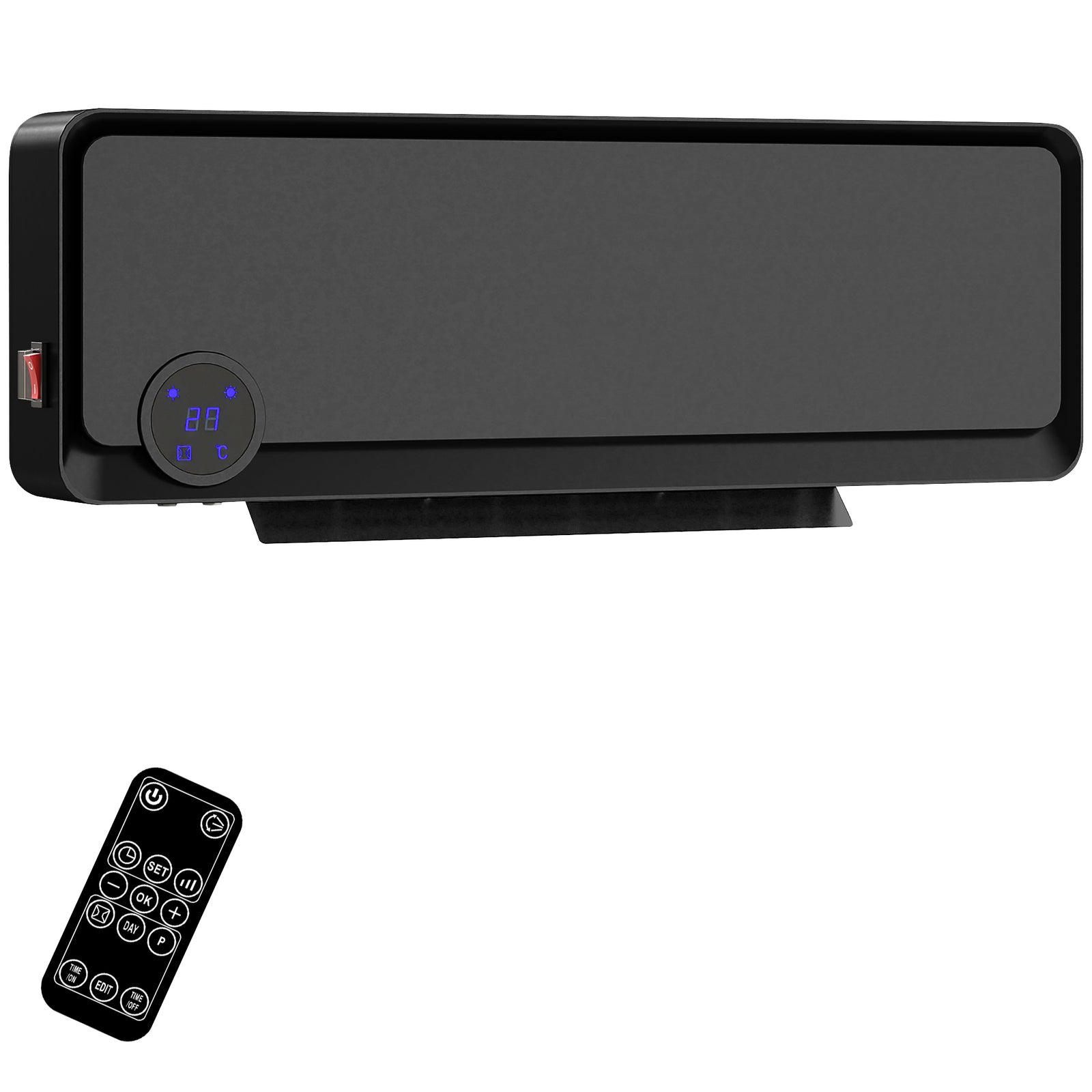 HOMCOM Wall Downflow Heater 2 Heat and Fan 1000W/2000W, Electric Space Heater with Timer Remote Oscillating, for Bedroom Home Office, Black