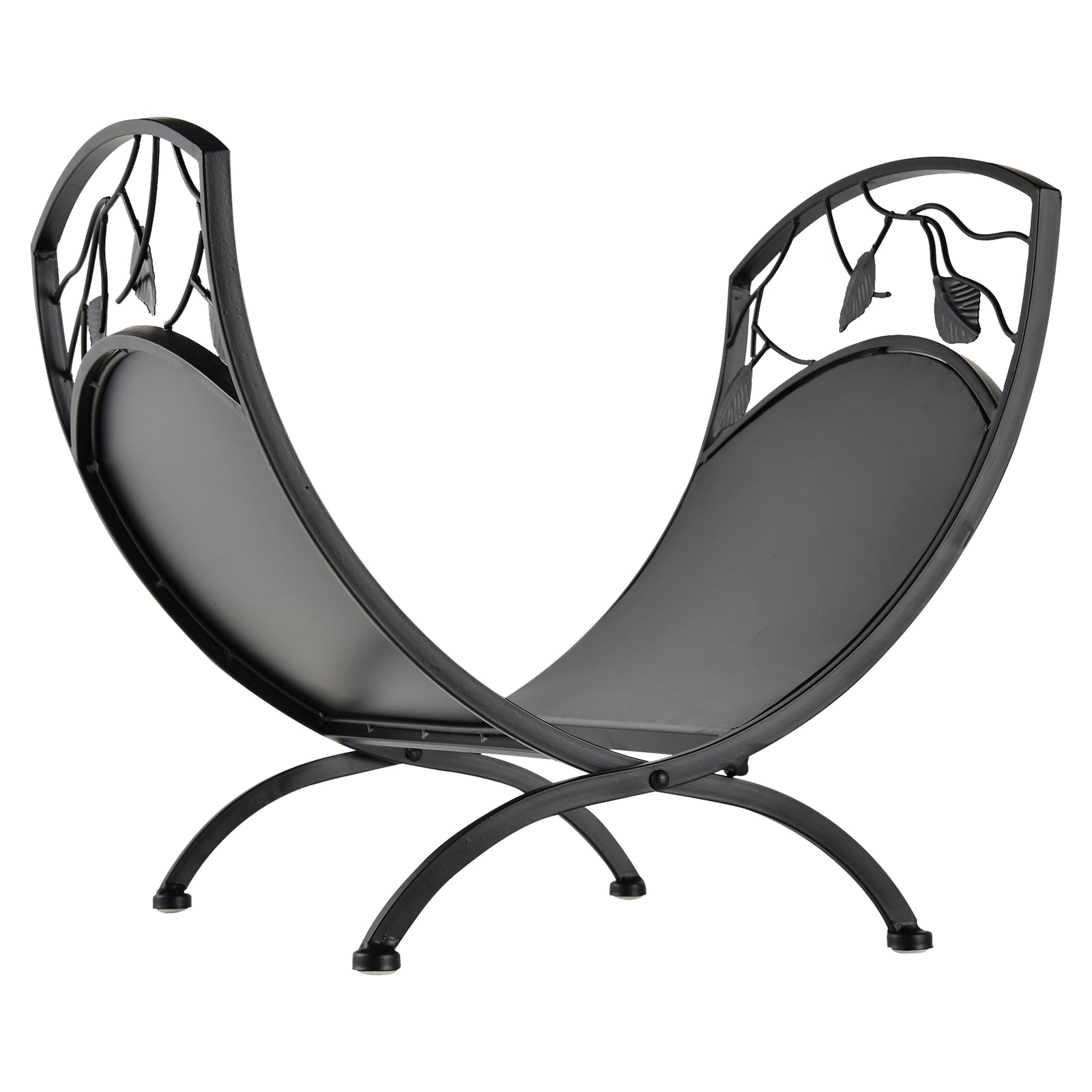 MCL Metal Arced Firewood Log Holder Indoor Outdoor Folding Firewood Rack Fireplace Wood Storage Shelf w/ Leaf Pattern Design, Black, 43.5W x 36.5D x 41H cm
