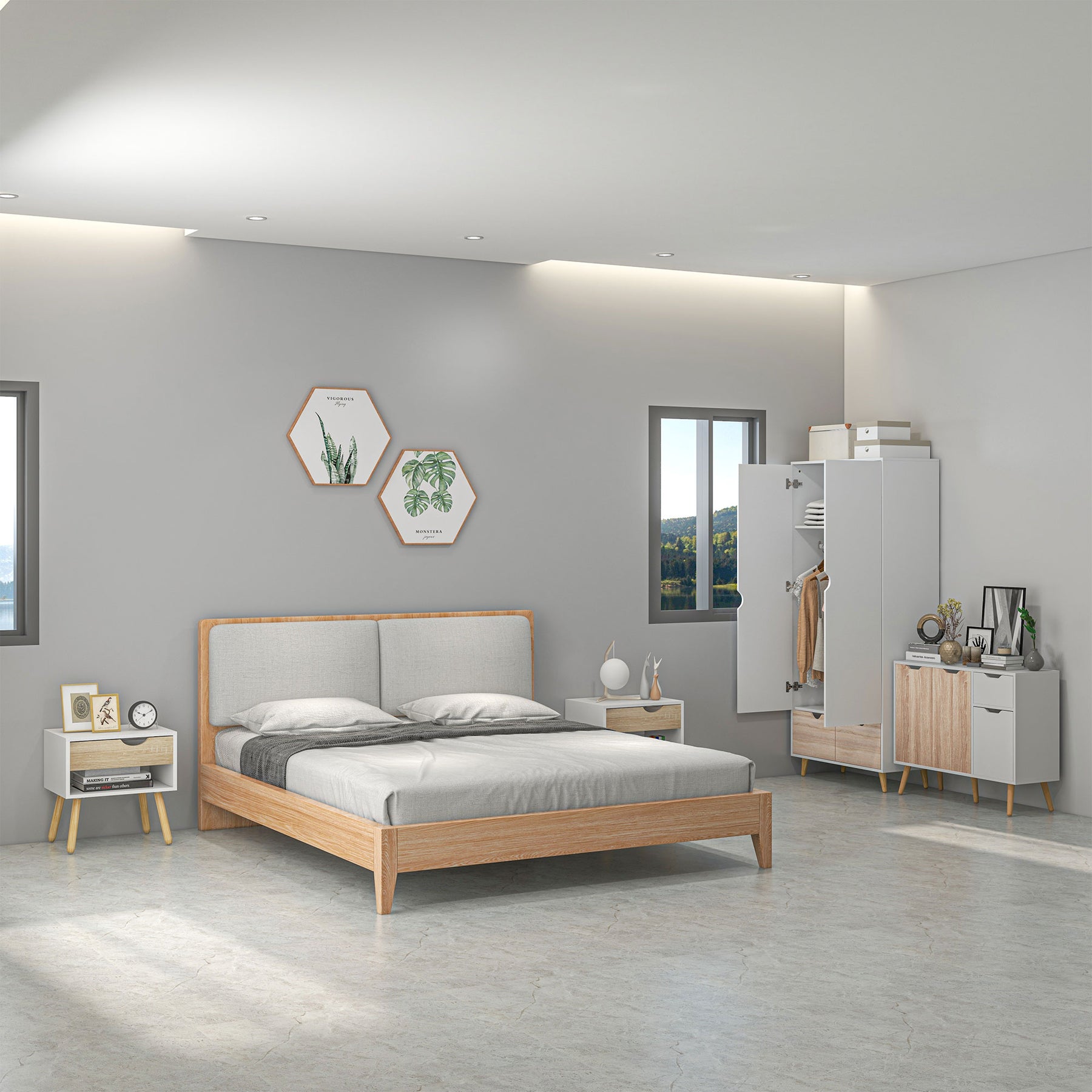 - Weight Capacity: 60kg (Wardrobe), 50kg (Side Cabinet), 15kg (Nightstand)