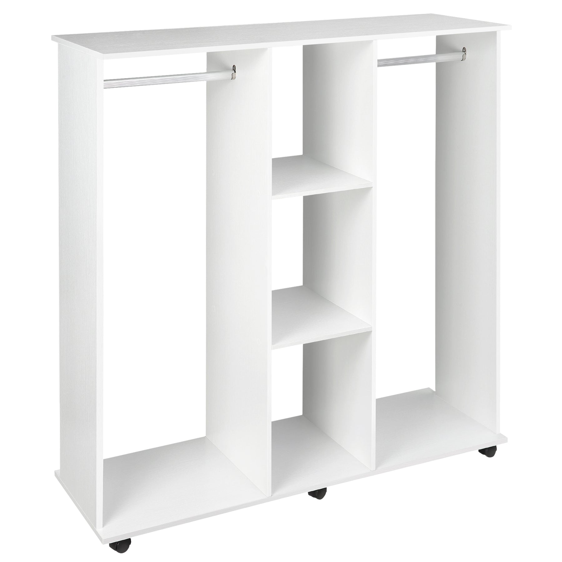 This Mobile Open wardrobe from is an ideal solution for your clothes storage. Designed to keep your clothes organised neatly on the 3-tier cube in the center and the two hanging rails on either side. It can also be moved around if required on 6 wheels where 2 can be locked for stabilty. With its modern styling, it is a great item to have to match any room decor in your home.