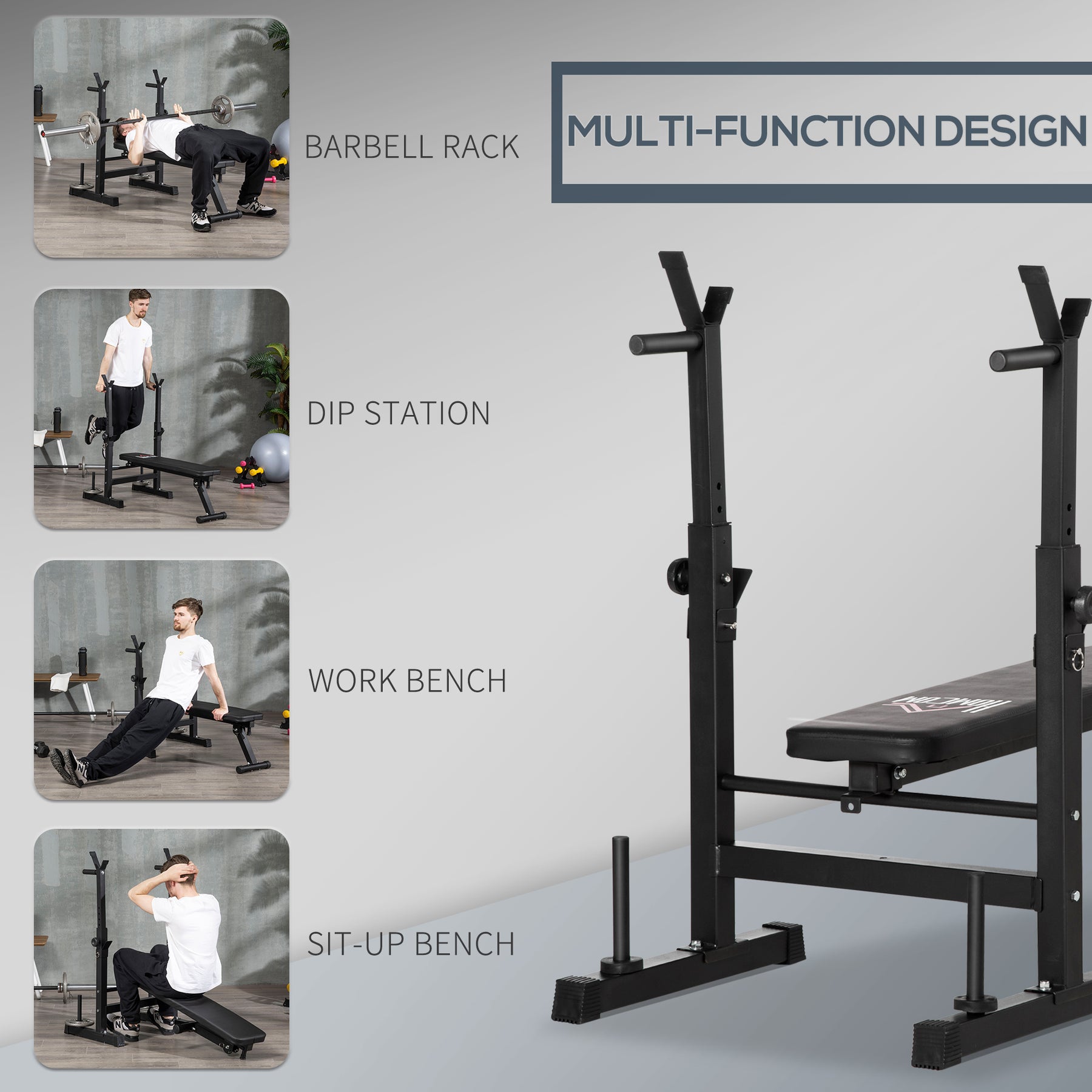 Train at home effortlessly with the MCL weight bench with a rack. Great for upper body workouts like bench presses, push-ups, dips, rows and more. The barbell rack offers eight adjustable positions for your comfort. The padded bench, with soft foam, ensures maximum comfort. Once you're done, simply fold and store it away to save space – suitable for homes with limited room. Stay fit and strong from the comfort of your home – no gym required!