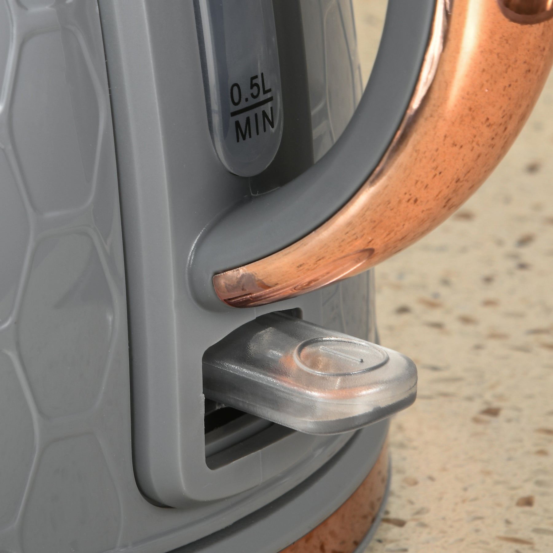 - 1.7L fast boil kettle and matching four-slice toaster. Stylish honeycomb design