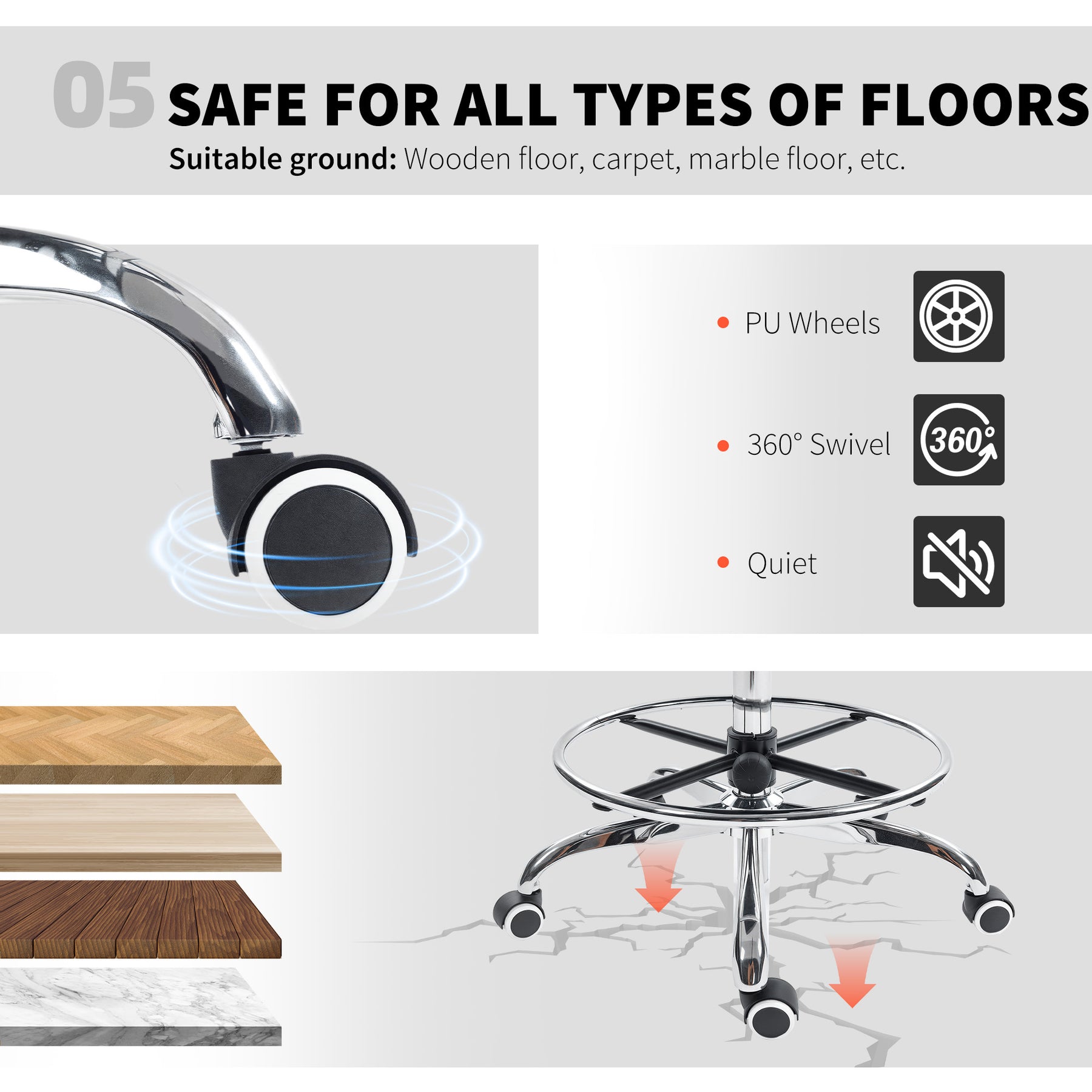 - 360° swivel and silent wheels offer flexible mobility for easy collaboration