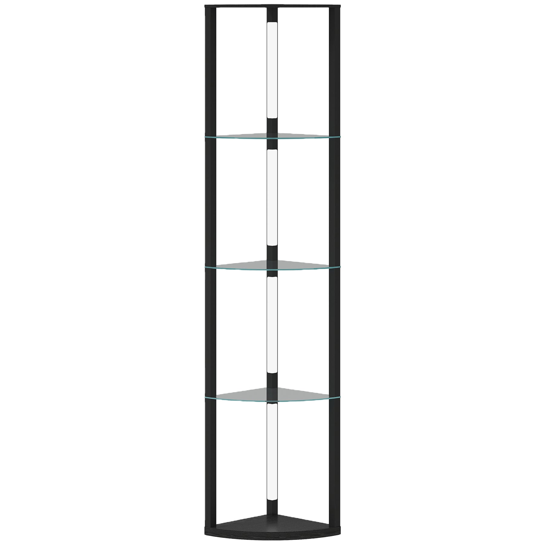 Discover the MCL corner floor lamp, a chic fusion of lighting and storage with five stylish, fan-shaped tiers. Excellent for showcasing books, plants, or ornaments, this standing lamp beautifully illuminates your treasures with its frosted glass shelves. Enjoy effortless control over ambiance with three brightness settings, easily adjusted via a foot switch. Great for any modern home.
