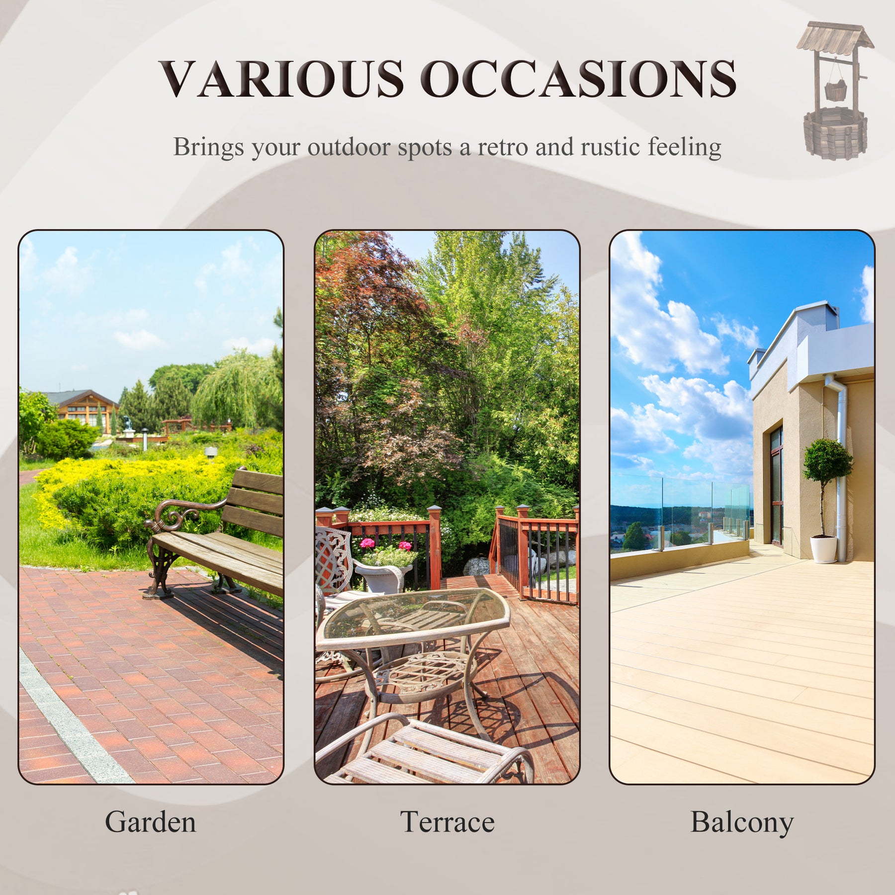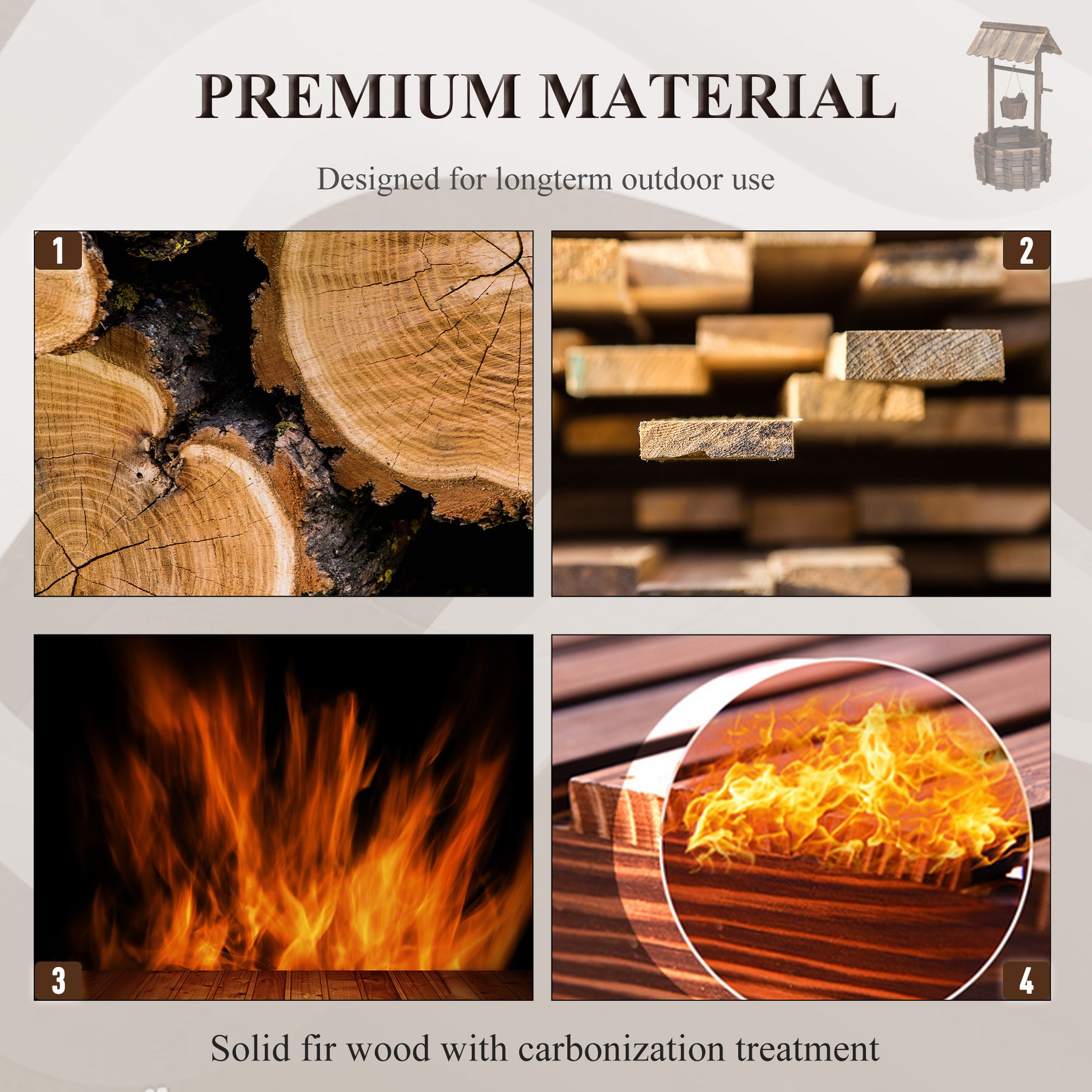 MCL water well planter will add an elegant and stylish look to your lawn or garden. Features burnt-like wood finish for a rustic appearance and fir wood construction keep the planter durable and long-lasting. Place various plants in the wishing well with large area and open base. The mini bucket is designed to place smaller plants and flowers at once. The garden planter features a top hut and a spacious well, which adds a fairytale accent to your garden or front yard.