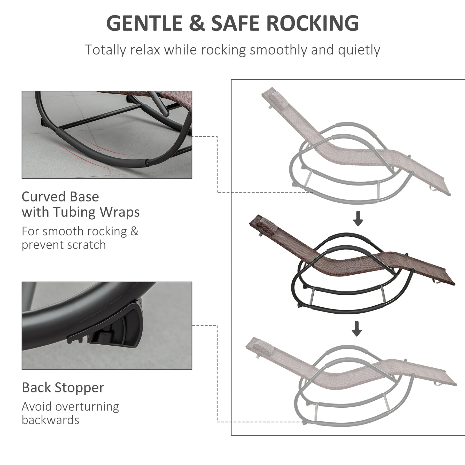 MCL Zero Gravity Rocking Lounge Chair Rattan Effect Patio Rocking Chair w/ Removable Pillow Recliner Seat Breathable Texteline - Brown