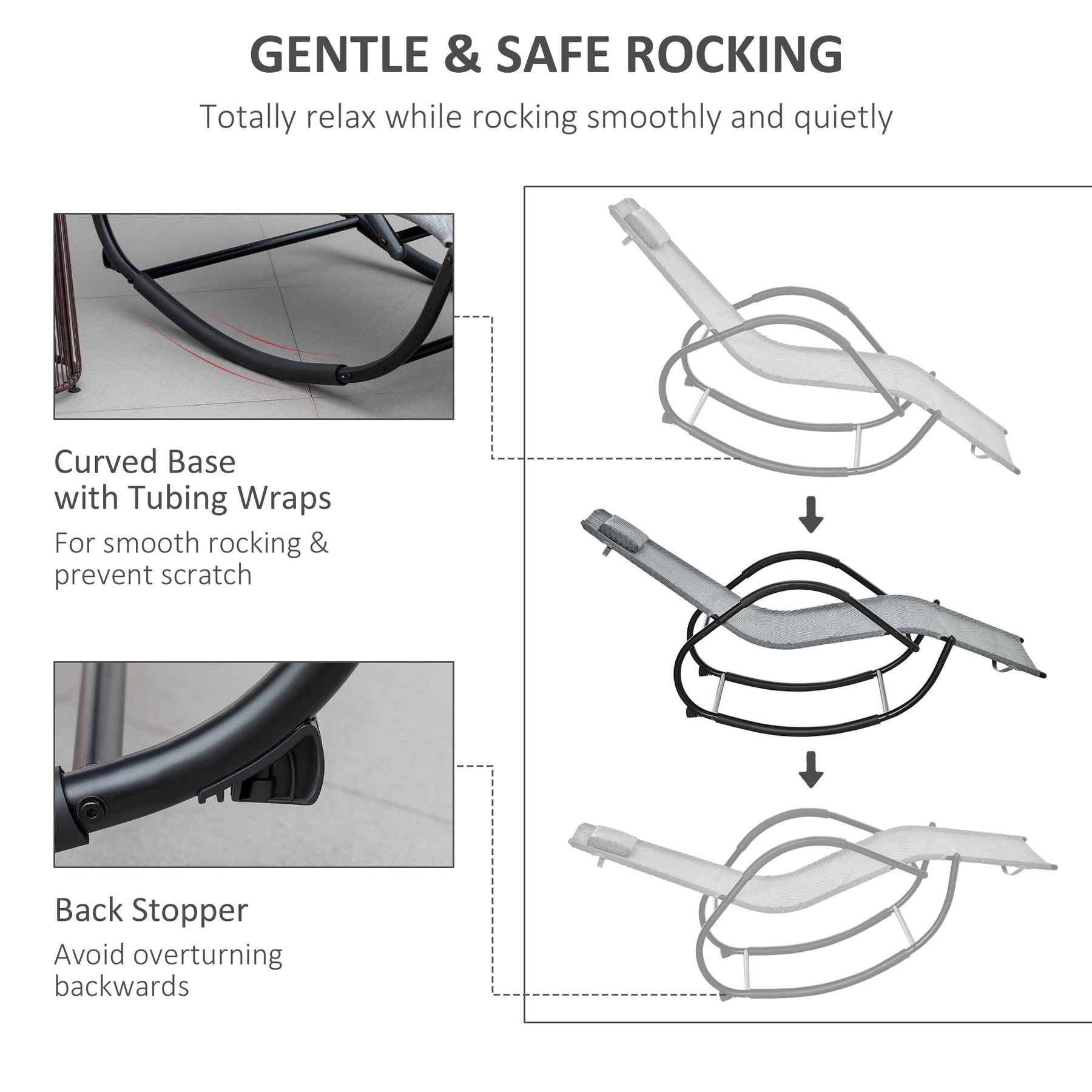 MCL Zero Gravity Rocking Lounge Chair Rattan Effect Patio Rocking Chair w/ Removable Pillow Recliner Seat Breathable Texteline - Grey