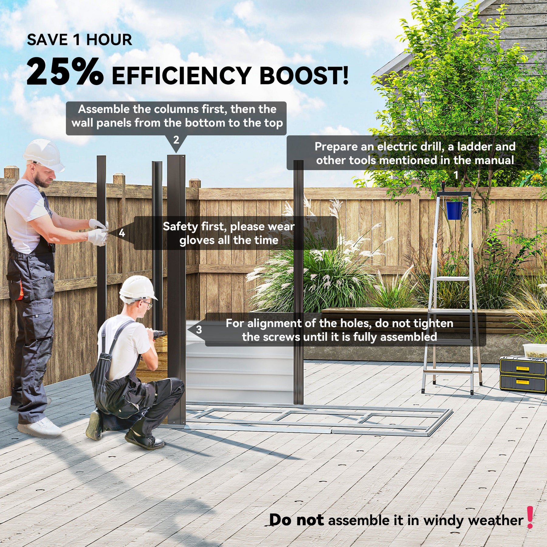 Outsunny 7 x 4ft Garden Shed, Easy to Assemble, Upgraded Galvanised Steel Frame with Foundation Kit, Double Doors with Lock, Outdoor Metal Shed with Vents and Gloves, Garden Storage Shed, Natural