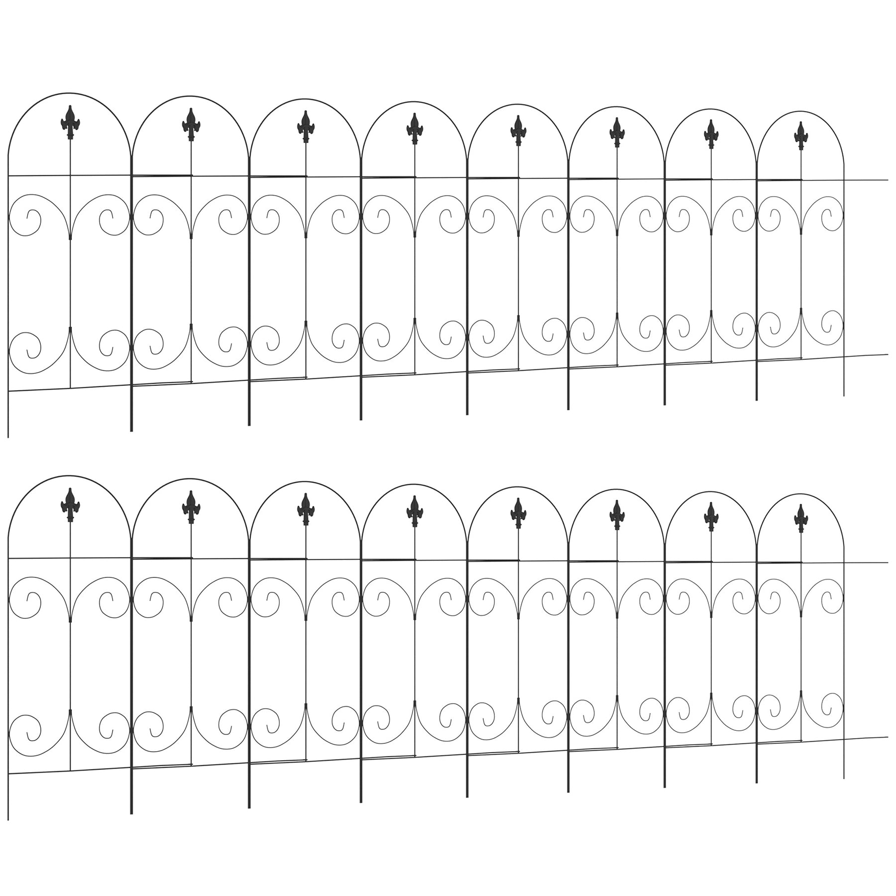 Outsunny Decorative Garden Fencing, 16PCs 44in x 25ft Outdoor Picket Fence Panels, Rustproof Metal Wire Landscape Flower Bed Border Edging, Black