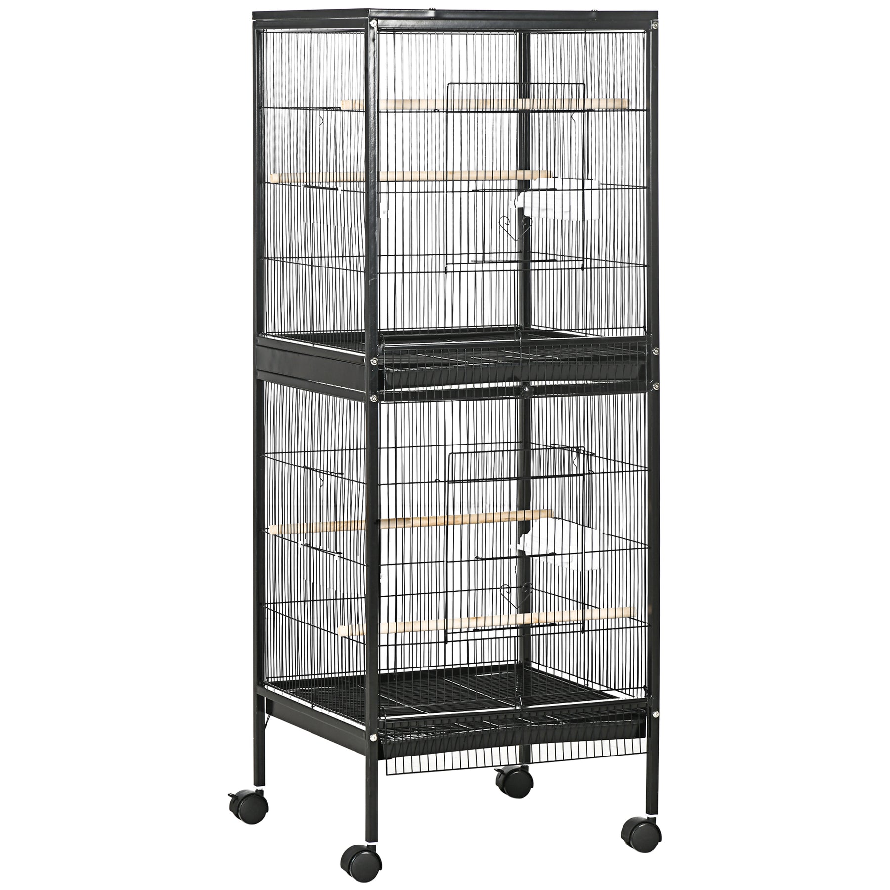 This PawHut cage provides birds with the space they need. There are two sections, both with two perches, so pets can stand, whilst flapping and extending their wings. For more room, remove the tray from the top section to make a big cage. There are multiple containers, which are easy to access, ensuring they have food and water. Four wheels for easy movement, whilst the large door lets you access and maintain the cage. Finished with two pull-out trays to remove dirt, keeping their home clean.
