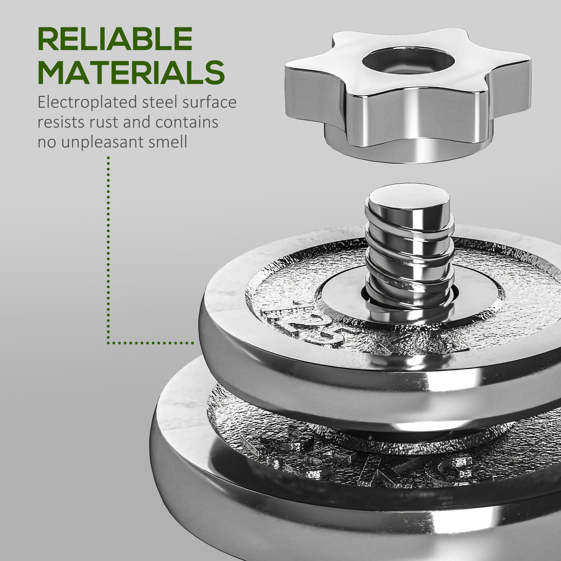 Strengthen every muscle with this 20kg dumbbell set, which can also be used as a barbell using the connecting bar. Perform arm curls, lunges, squats, shrugs, bench presses, deadlifts and more for varied and balanced workouts. Tailor your intensity by adding or removing weight plates. Non-slip handles offer a secure, comfortable grip, minimising the risk of drops. Turn any spot into a personalised gym, gaining strength and improving fitness in your own comfortable space.